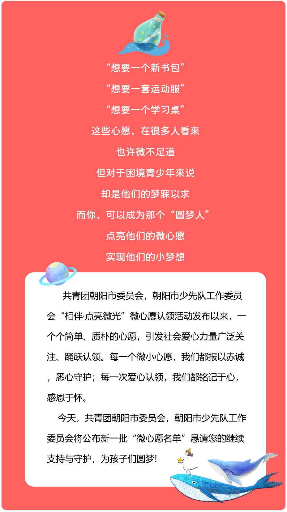 原來(lái)的書(shū)包又舊又小,希望得到一個(gè)耐磨的書(shū)包,這樣就能把文具和課外書(shū)都整理好,每天開(kāi)開(kāi)心心去上課。把課本和彩筆都裝進(jìn)星星里?,F(xiàn)在用的布包帶子總斷,鉛筆盒掉出來(lái)過(guò)三次,希望新...